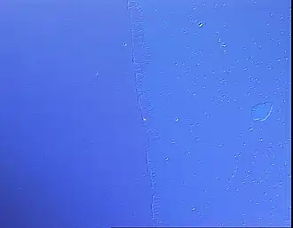Advances to the discovery of LB and LM films began with Benjamin Franklin in 1773 when he dropped about a teaspoon of oil onto a pond. Franklin noticed that the waves were calmed almost instantly and that the calming of the waves spread for about half an acre.[2] What Franklin did not realize was that the oil had formed a monolayer on top of the pond surface. Over a century later, Lord Rayleigh quantified what Benjamin Franklin had seen. Knowing that the oil, oleic acid, had spread evenly over the water, Rayleigh calculated that the thickness of the film was 1.6 nm by knowing the volume of oil dropped and the area of coverage.