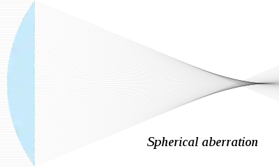 Spherical aberration occurs because spherical surfaces are not the ideal shape for a lens, but are by far the simplest shape to which glass can be ground and polished, and so are often used. Spherical aberration causes beams parallel to, but distant from, the lens axis to be focused in a slightly different place than beams close to the axis. This manifests itself as a blurring of the image. Spherical aberration can be minimised with normal lens shapes by carefully choosing the surface curvatures for a particular application. For instance, a plano-convex lens, which is used to focus a collimated beam, produces a sharper focal spot when used with the convex side towards the beam source.