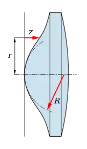 • d is the thickness of the lens (the distance along the lens axis between the two surface vertices).