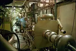 Beginning in the 1960s, scientists at Stanford and elsewhere began to explore the use of superconducting radio frequency cavities for particle acceleration.[13] Superconducting cavities made of niobium alloys allow for much more efficient acceleration, as a substantially higher fraction of the input power could be applied to the beam rather than lost to heat. Some of the earliest superconducting linacs included the Superconducting Linear Accelerator (for electrons) at Stanford[14] and the Argonne Tandem Linear Accelerator System (for protons and heavy ions) at Argonne National Laboratory.[15]