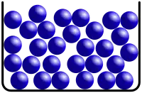 In all liquids, excluded volume interactions induce short-range order in molecular positions (center-of-mass coordinates). Classical monatomic liquids like argon and krypton are the simplest examples. Such liquids can be modeled as disordered "heaps" of closely packed spheres, and the short-range order corresponds to the fact that nearest and next-nearest neighbors in a packing of spheres tend to be separated by integer multiples of the diameter.[49][50]