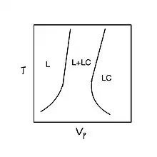 The mechanism for lyotropic systems (L means liquid, LC means liquid crystal, Vp means the volume fraction of the polymer, T means temperature.)