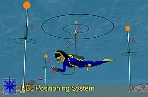 A long baseline (LBL) acoustic positioning system[1] is one of three broad classes of underwater acoustic positioning systems that are used to track underwater vehicles and divers. The other two classes are ultra short baseline systems (USBL) and short baseline systems (SBL). LBL systems are unique in that they use networks of sea-floor mounted baseline transponders as reference points for navigation. These are generally deployed around the perimeter of a work site. The LBL technique results in very high positioning accuracy and position stability that is independent of water depth. It is generally better than 1-meter and can reach a few centimeters accuracy.[2] LBL systems are generally employed for precision underwater survey work where the accuracy or position stability of ship-based (SBL, USBL) positioning systems does not suffice.