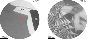 A particular application of bright field spectroscopy is the counting of the exact number of layers in layered materials such as (few layer) graphene, hexagonal boron nitride and some transition metal dichalcogenides.[4] [5] [6]
