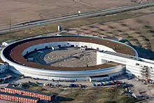 The new laboratories, including two storage rings and a full-energy linac is situated in Brunnshög in Lund North East. The inauguration of MAX IV took place 21 June 2016, on the day of summer solstice.[8] The larger of the two storage rings has a circumference of 528 meters, operates at 3 GeV energy, and has been optimized for high-brightness x-rays. The smaller storage ring (circumference 96 meters) is operated at 1.5 GeV energy and has been optimized for UV.[9] There are also plans for a future expansion of the facility that would add a free-electron laser (FEL) to the facility, but is yet to be funded.[8]