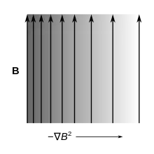 where the first term on the right hand side is the magnetic tension and the second term is the magnetic pressure force.[1][2]