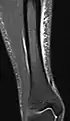 Inversion recovery Short tau inversion recoverySTIRFat suppression by setting an inversion time where the signal of fat is zero.[74] High signal in edema, such as in more severe stress fracture.[75] Shin splints pictured: