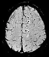 Susceptibility-weightedSWISpoiled gradient recalled echo (GRE), fully flow compensated, long echo time, combines phase image with magnitude image[73] Detecting small amounts of hemorrhage (diffuse axonal injury pictured) or calcium.[73]