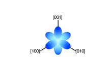 If the second term can be neglected, the easy axes are the ⟨100⟩ axes (i.e., the ± x, ± y, and ± z, directions) for K1 > 0 and the ⟨111⟩ directions for K1 < 0 (see images on right).