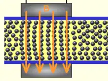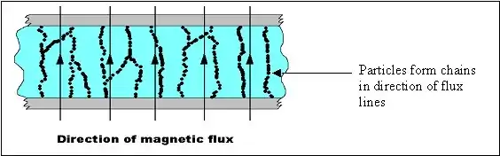 When a magnetic field is applied, however, the microscopic particles (usually in the 0.1–10 μm range) align themselves along the lines of magnetic flux,[2] see below.
