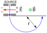In the 19th century, the mass-to-charge ratios of some ions were measured by electrochemical methods. In 1897, the mass-to-charge ratio of the electron was first measured by J. J. Thomson.[5] By doing this, he showed that the electron was in fact a particle with a mass and a charge, and that its mass-to-charge ratio was much smaller than that of the hydrogen ion H+. In 1898, Wilhelm Wien separated ions (canal rays) according to their mass-to-charge ratio with an ion optical device with superimposed electric and magnetic fields (Wien filter). In 1901 Walter Kaufman measured the increase of electromagnetic mass of fast electrons (Kaufmann–Bucherer–Neumann experiments), or relativistic mass increase in modern terms. In 1913, Thomson measured the mass-to-charge ratio of ions with an instrument he called a parabola spectrograph.[6] Today, an instrument that measures the mass-to-charge ratio of charged particles is called a mass spectrometer.