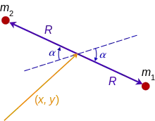 where x, y are the Cartesian coordinates of the bar's midpoint and α is the angle of the bar from some arbitrary reference direction. The positions and velocities of the two particles are