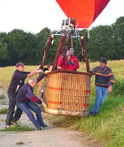 The mass of "weightless" (neutrally buoyant) balloons can be better appreciated with much larger hot air balloons. Although no effort is required to counter their weight when they are hovering over the ground (when they can often be within one hundred newtons of zero weight), the inertia associated with their appreciable mass of several hundred kilograms or more can knock fully grown men off their feet when the balloon's basket is moving horizontally over the ground.