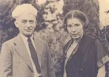 In 1912, Born met Hedwig (Hedi) Ehrenberg, the daughter of a Leipzig University law professor, and a friend of Carl Runge's daughter Iris. She was of Jewish background on her father's side, although he had become a practising Lutheran when he got married, as did Max's sister Käthe. Despite never practising his religion, Born refused to convert, and his wedding on 2 August 1913 was a garden ceremony. However, he was baptised as a Lutheran in March 1914 by the same pastor who had performed his wedding ceremony. Born regarded "religious professions and churches as a matter of no importance".[18] His decision to be baptised was made partly in deference to his wife, and partly due to his desire to assimilate into German society.[18] The marriage produced three children: two daughters, Irene, born in 1914, and Margarethe (Gritli), born in 1915, and a son, Gustav, born in 1921.[19] Through marriage, Born is related to jurists Victor Ehrenberg, his father-in-law, and Rudolf von Jhering, his wife's maternal grandfather, as well as to philosopher and theologian Hans Ehrenberg, and is a great uncle of British comedian Ben Elton.[20]