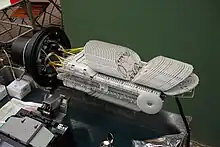 A mechanical splice is a junction of two or more optical fibers that are aligned and held in place by a self-contained assembly (usually the size of a large carpenter's nail).[1] The fibers are not permanently joined, just precisely held together so that light can pass from one to another. This impermanence is an important advantage over fusion splicing, as splice loss, the amount of power that the splice fails to transmit, can be better measured and prevented.[2]