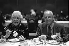 Melba Phillips and Herman William Koch eating ice cream at an AIP Corporate Associates Meeting 1982