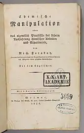 • Faraday, Michael (1827). Chemical Manipulation, Being Instructions to Students in Chemistry. John Murray. 2nd ed. 1830, 3rd ed. 1842
