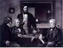Faraday assisted with the planning and judging of exhibits for the Great Exhibition of 1851 in London.[69] He also advised the National Gallery on the cleaning and protection of its art collection, and served on the National Gallery Site Commission in 1857.[70][71] Education was another of Faraday's areas of service; he lectured on the topic in 1854 at the Royal Institution,[72] and, in 1862, he appeared before a Public Schools Commission to give his views on education in Great Britain. Faraday also weighed in negatively on the public's fascination with table-turning,[73][74] mesmerism, and seances, and in so doing chastised both the public and the nation's educational system.[75]
