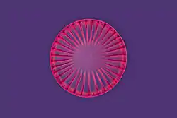 Rheinberg illumination is a variant of dark field illumination in which transparent, colored filters are inserted just before the condenser so that light rays at high aperture are differently colored than those at low aperture (i.e., the background to the specimen may be blue while the object appears self-luminous red). Other color combinations are possible, but their effectiveness is quite variable.[17]