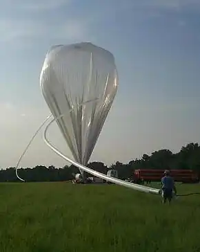 ![]() The Maxima balloon is readied for launch | |