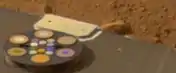 Knudsen, Madsen and their research group designed magnetic properties experiments on board each of the two rovers, Spirit and Opportunity, of the 2003 Mars Exploration Rover mission. Three of the magnets were designed to draw airborne magnetic dust from the atmosphere and four small magnets were placed on the arm, built into the Rock Abrasion Tool. They were designed to capture magnetic dust liberated from the Martian rocks during abrasion.[6] The dust was analysed by onboard instruments including cameras using various spectroscopy filters.[7] The results from the magnet experiment was considered a success in that they helped the understanding of how the dust on Mars was composed and built up.[7] Members of the team, including Madsen, were at the control center at the Jet Propulsion Laboratory in Pasadena during the rovers' landing and the first three months of initial data collection.[8][9]