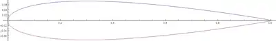 The formula for the shape of a NACA 00xx foil, with "xx" being replaced by the percentage of thickness to chord, is[4]