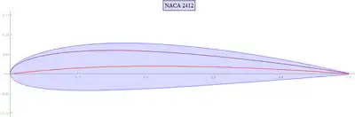 For example, the NACA 2412 airfoil has a maximum camber of 2% located 40% (0.4 chords) from the leading edge with a maximum thickness of 12% of the chord.