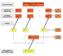 - The training (minimization of the ) of a set of PDFs parametrized by neural networks on each of the above MC replicas of the data. PDFs are parametrized at the initial evolution scale and then evolved to the experimental data scale by means of the DGLAP equations. Since the PDF parametrization is redundant, the minimization strategy is based in genetic algorithms as well as gradient descent based minimizers.