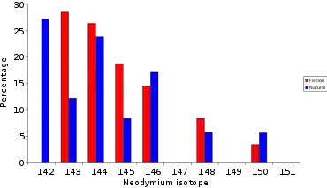The neodymium found at Oklo has a different isotopic composition to that of natural neodymium: the latter contains 27% 142