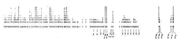 The advantage of the SSMS is its ability to produce substantial quantities of ions from all the elements present in the electrodes. The electrodes, between which a spark is generated, have to be conductive (to achieve this, Oklo samples were mixed with high-purity silver). All the isotopes in the sample, from lithium to uranium, are plotted on a photo plate. On examining the plate (see below), J.F. Dozol noted in particular the very high uranium content of Oklo 311 ore: