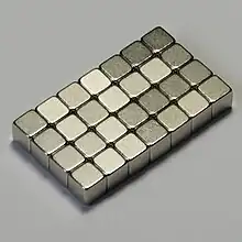 A neodymium magnet (also known as NdFeB, NIB or Neo magnet) is a permanent magnet made from an alloy of neodymium, iron, and boron to form the Nd2Fe14B tetragonal crystalline structure.[1] They are the most widely used type of rare-earth magnet.[2]