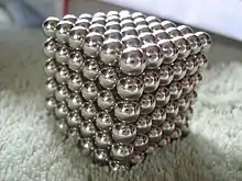 The greater strength of neodymium magnets has inspired new applications in areas where magnets were not used before, such as magnetic jewelry clasps, keeping up foil insulation, children's magnetic building sets (and other neodymium magnet toys) and as part of the closing mechanism of modern sport parachute equipment.[32] They are the main metal in the formerly popular desk-toy magnets, "Buckyballs" and "Buckycubes", though some U.S. retailers have chosen not to sell them because of child-safety concerns,[33] and they have been banned in Canada for the same reason.[34] While a similar ban has been lifted in the United States in 2016, the minimum age requirement advised by the CPSC is now 14, and there are now new warning label requirements. [35]