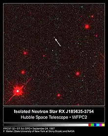 - Posselt, B.; Neuhäuser, R.; Haberl, F. (March 2009). "Searching for substellar companions of young isolated neutron stars". Astronomy and Astrophysics. 496 (2): 533–545. arXiv:0811.0398. Bibcode:2009A&A...496..533P. doi:10.1051/0004-6361/200810156. S2CID 10639250.