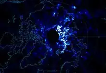 Noctilucent clouds were first detected from space by an instrument on the OGO-6 satellite in 1972. The OGO-6 observations of a bright scattering layer over the polar caps were identified as poleward extensions of these clouds.[27] A later satellite, the Solar Mesosphere Explorer, mapped the distribution of the clouds between 1981 and 1986 with its ultraviolet spectrometer.[27] The clouds were detected with a lidar in 1995 at Utah State University, even when they were not visible to the naked eye.[28] The first physical confirmation that water ice is indeed the primary component of noctilucent clouds came from the HALOE instrument on the Upper Atmosphere Research Satellite in 2001.[29]