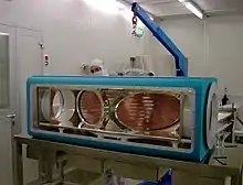When Nova was being dismantled to make way for NIF, the target chamber was lent to France for temporary use during the development of Laser Megajoule, a system similar to NIF in many ways. This loan was controversial, as the only other operational laser at LLNL at the time, Beamlet (a single experimental beamline for NIF), had recently been sent to Sandia National Laboratory in New Mexico. This left LLNL with no large laser facility until NIF started operation, which was then estimated as being 2003 at the earliest. Work on NIF was not declared formally completed until March 31, 2009.[24]
