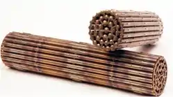 CANDU fuel bundles, each about 50 cm long, 10 cm in diameter.