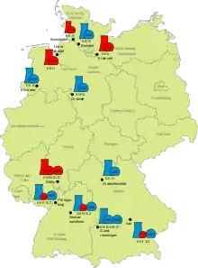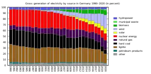 Nuclear power accounted for 13.3% of German electricity supply in 2021,[6] supplied by six power plants. Three of these were switched off at the end of 2021, and the other three ceased operations by April 2023.[7][8]