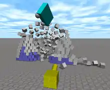 The Open Dynamics Engine is used for simulating the dynamic interactions between bodies in space. It is not tied to any particular graphics package although it includes a basic one called drawstuff.[4] It supports several geometries: box, sphere, capsule (cylinder capped with hemispheres), triangle mesh, cylinder and heightmap.