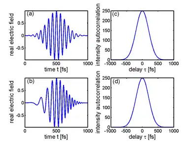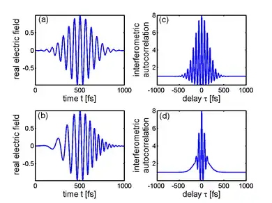 The Wiener-Khinchin theorem states that the Fourier transform of the field autocorrelation is the spectrum of , i.e., the square of the magnitude of the Fourier transform of . As a result, the field autocorrelation is not sensitive to the spectral phase.