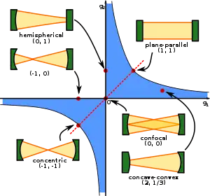 A simple geometric statement describes the regions of stability: A cavity is stable if the line segments between the mirrors and their centers of curvature overlap, but one does not lie entirely within the other.