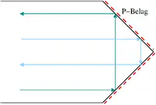 In a roof prism without a phase-correcting coating, s-polarized and p-polarized light each acquire a different geometric phase as they pass through the upper prism. When the two polarized components are recombined, interference between the s-polarized and p-polarized light results in a different intensity distribution perpendicular to the roof edge as compared to that along the roof edge. This effect reduces contrast and resolution in the image perpendicular to the roof edge, producing an inferior image compared to that from a porro prism erecting system. This roof edge diffraction effect may also be seen as a diffraction spike perpendicular to the roof edge generated by bright points in the image. In technical optics, such a phase is also known as the Pancharatnam phase,[3] and in quantum physics an equivalent phenomenon is known as the Berry phase.[4]