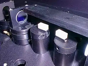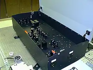 An optical parametric oscillator (OPO) is a parametric oscillator that oscillates at optical frequencies. It converts an input laser wave (called "pump") with frequency into two output waves of lower frequency () by means of second-order nonlinear optical interaction. The sum of the output waves' frequencies is equal to the input wave frequency: .[1] For historical reasons, the two output waves are called "signal" and "idler", where the output wave with higher frequency is the "signal". A special case is the degenerate OPO, when the output frequency is one-half the pump frequency, , which can result in half-harmonic generation when signal and idler have the same polarization.