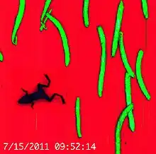 Lasers can be designed to operate within specific wavelengths of light; whether on the visible spectrum or beyond.[8] For example, lasers can detect chlorophyll by stimulating fluorescence using specific wavelengths; which is a process that is very effective for removing foreign material from green vegetables.[9]