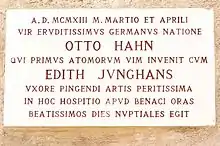 With a regular income, Hahn was now able to contemplate marriage. In June 1911, while attending a conference in Stettin, Hahn met Edith Junghans (1887–1968), a student at the Royal School of Art in Berlin. They saw each other again in Berlin, and became engaged in November 1912. On 22 March 1913 the couple married in Edith's native city of Stettin, where her father, Paul Ferdinand Junghans, was a high-ranking law officer and President of the City Parliament until his death in 1915. After a honeymoon at Punta San Vigilio on Lake Garda in Italy, they visited Vienna, and then Budapest, where they stayed with George de Hevesy.[30]