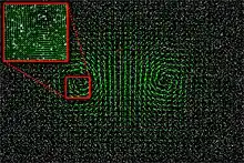 Particle image velocimetry (PIV) is an optical method of flow visualization used in education[1] and research.[2][3][4][5][6] It is used to obtain instantaneous velocity measurements and related properties in fluids. The fluid is seeded with tracer particles which, for sufficiently small particles, are assumed to faithfully follow the flow dynamics (the degree to which the particles faithfully follow the flow is represented by the Stokes number). The fluid with entrained particles is illuminated so that particles are visible. The motion of the seeding particles is used to calculate speed and direction (the velocity field) of the flow being studied.