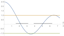 The right hand side of the last expression above can sometimes be greater than 1 or less than –1, in which case there is no value of k that can make the equation true. Since , that means there are certain values of E for which there are no eigenfunctions of the Schrödinger equation. These values constitute the band gap.