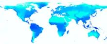 The global cooling potential of various areas around the world varies primarily based on climate zones and the presence of weather patterns and events. Dry and hot regions generally have a higher radiative cooling power (estimated up to 120 W/m2), while colder regions or those with high humidity or cloud cover generally have lower global cooling potentials.[52] The cooling potential of various regions can also change from winter to summer due to shifts in humidity and cloud cover.[17] Studies mapping the daytime radiative cooling potential have been done for China[11] and India,[63] the United States,[64] and on a continental scale across Europe.[65]