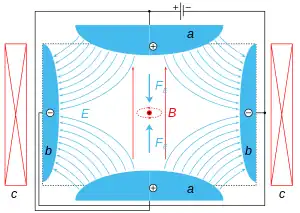 A Penning trap is a device for the storage of charged particles using a homogeneous magnetic field and a quadrupole electric field. It is mostly found in the physical sciences and related fields of study as a tool for precision measurements of properties of ions and stable subatomic particles, like for example mass,[1] fission yields and isomeric yield ratios. One initial object of study were the so-called geonium atoms, which represent a way to measure the electron magnetic moment by storing a single electron. These traps have been used in the physical realization of quantum computation and quantum information processing by trapping qubits. Penning traps are in use in many laboratories worldwide, including CERN, to store and investigate anti-particles such as antiprotons.[2] The main advantages of Penning traps are the potentially long storage times and the existence of a multitude of techniques to manipulate and non-destructively detect the stored particles.[3][4] This makes Penning traps versatile tools for the investigation of stored particles, but also for their selection, preparation or mere storage.