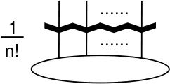 Antisymmetrization of indices is represented by a thick straight line crossing the index lines horizontally.