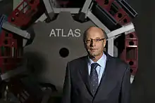 Peter Jenni, (born 17 April 1948) is an experimental particle physicist working at CERN.[1] He is best known as one of the "founding fathers" of the ATLAS experiment[2] at the CERN Large Hadron Collider together with a few other colleagues. He acted as spokesperson (project leader) of the ATLAS Collaboration until 2009.[3] ATLAS is a world-wide collaboration which started in 1992[4] involving roughly 3,000 physicists at 183 institutions in 38 countries.[5] Jenni was directly involved in the experimental work leading to the discoveries of the W and Z bosons in the 1980s and the Higgs boson in 2012.[6][7] He is (co-)author of about 1000 publications in scientific journals.